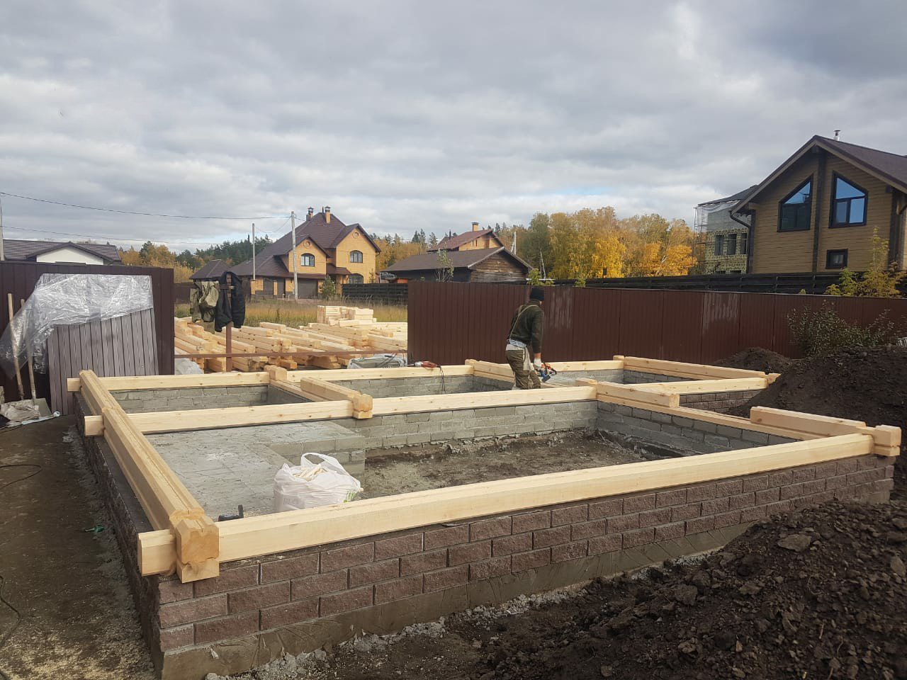 С учетом того, что деревянные дома из бруса обычно возводят на участках с нестабильным или слабым основанием, мы монтируем их на свайном фундаменте. Он позволяет построить дом или баню из бруса даже на глинистых, песчаных, торфяных почвах, в болотистых местах и склонах, равномерно распределяя нагрузку и предотвращая проседание здания.